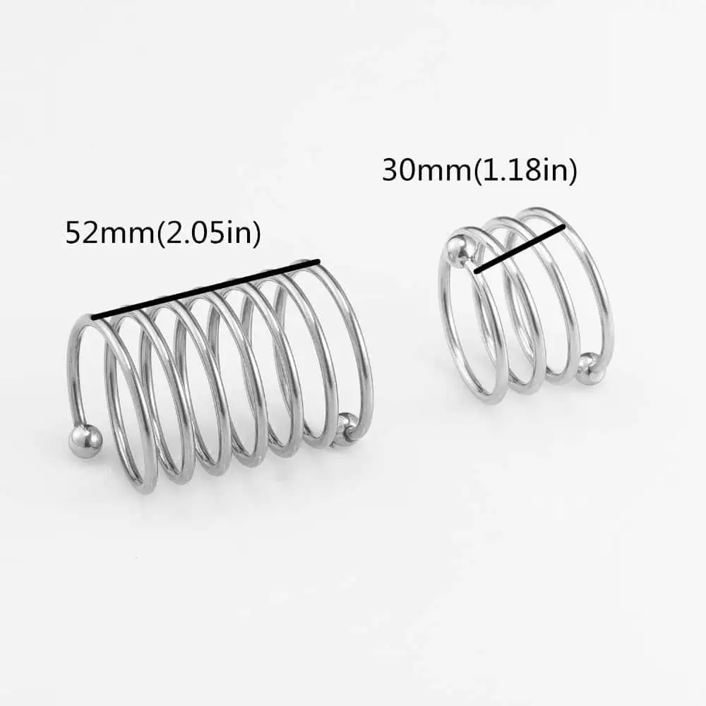 Obtient une érection solide et durable grâce à ce Cockring en forme de ressort. Tu découvrira une sensation d’oppression à la fois douloureuse et excitante.